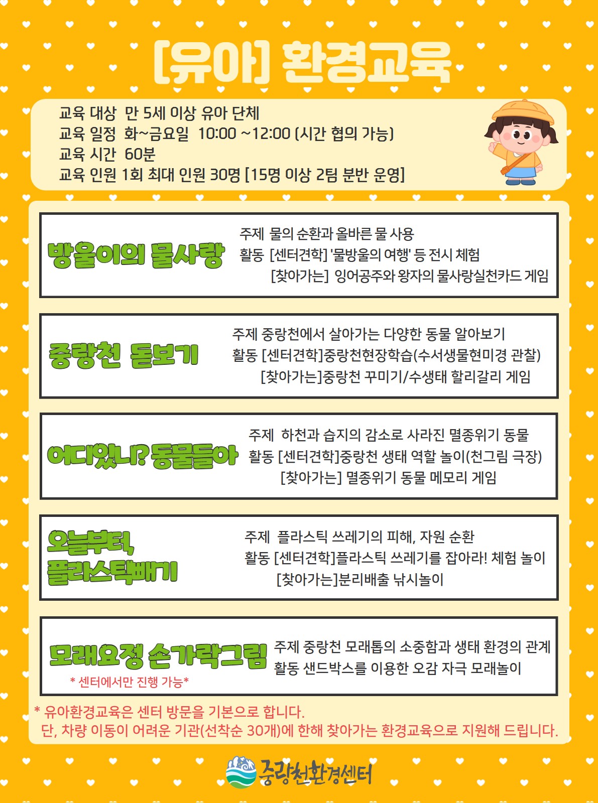 * 센터 방문교육은 6-12월 진행합니다.*