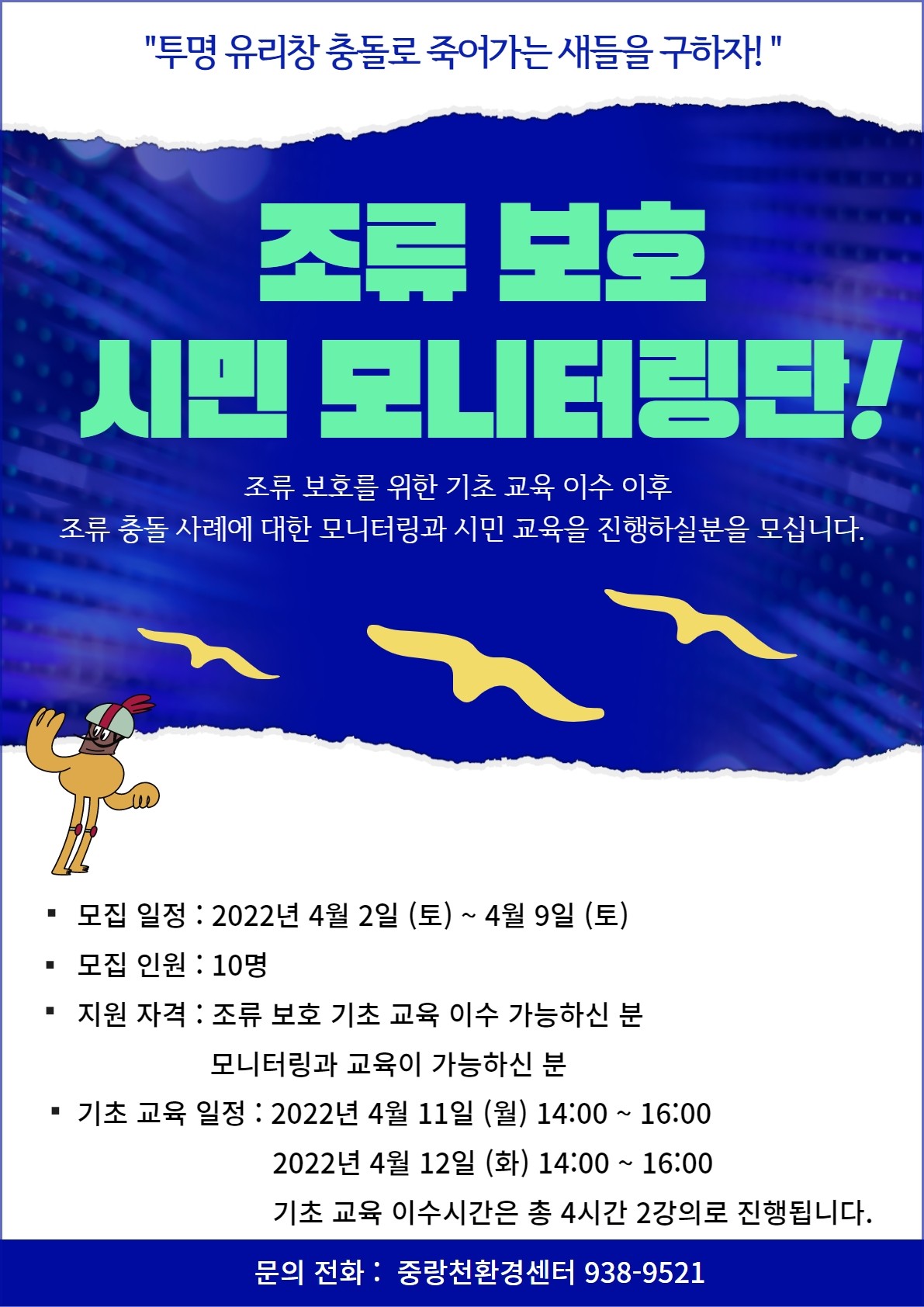 2. 조류 충돌 모니터링과 시민 교육이 가능하신 분