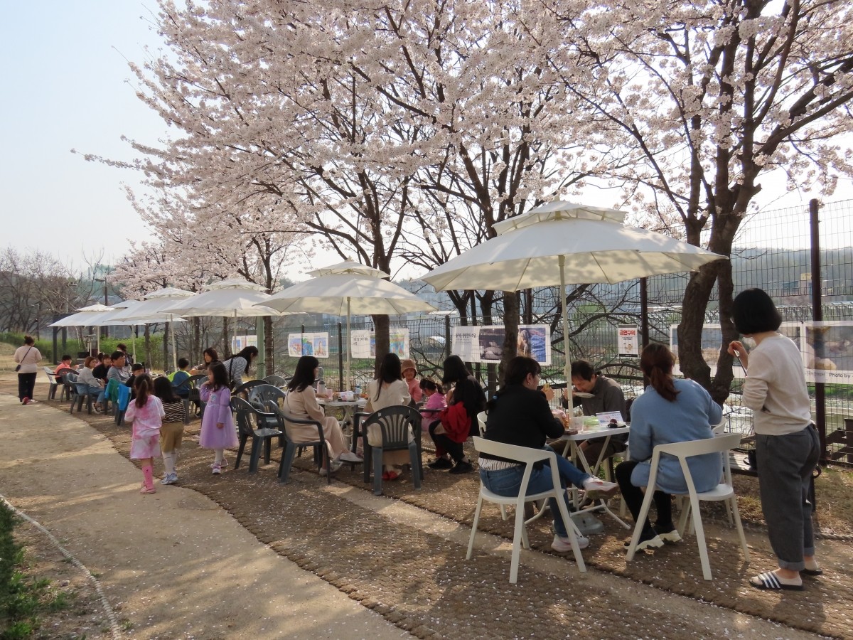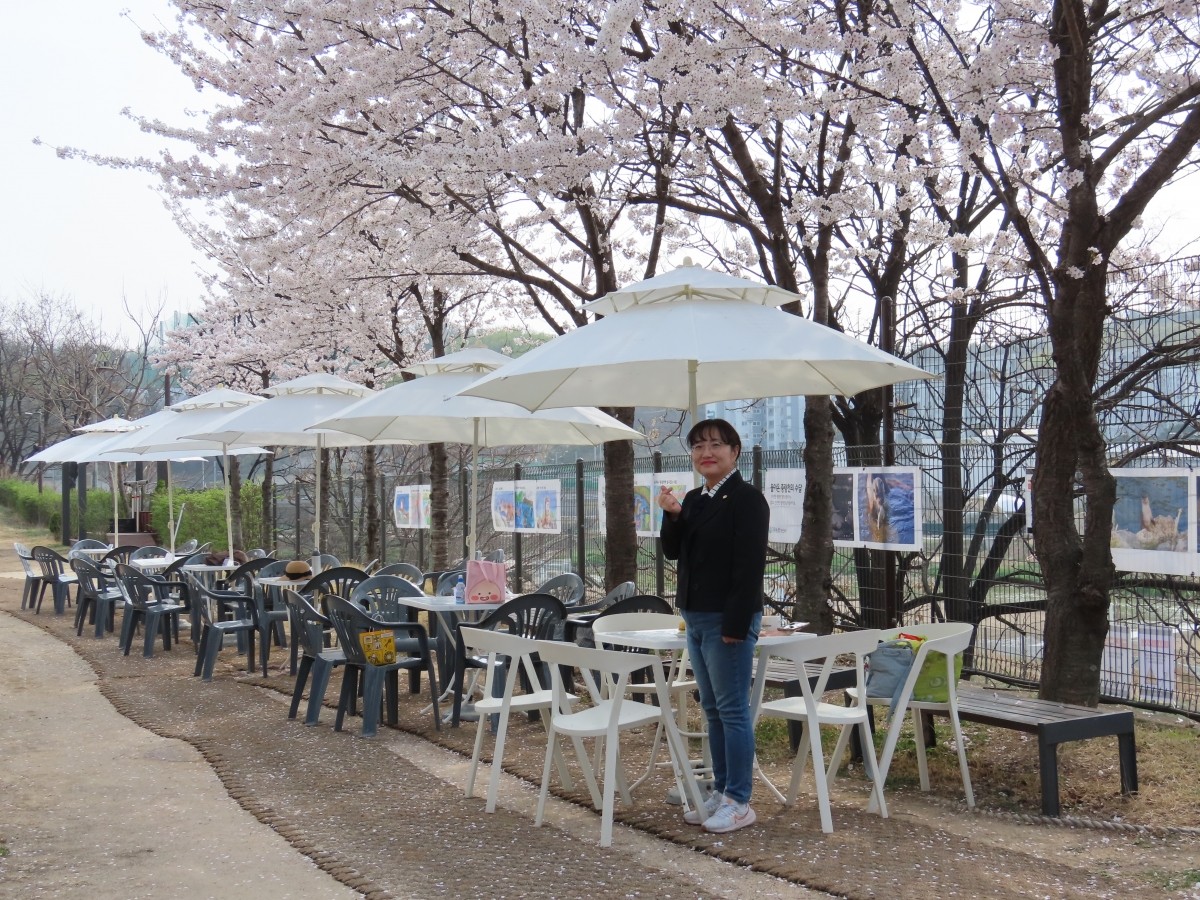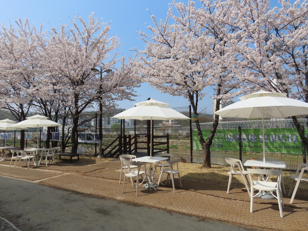 2023년 4월 1일 벚꽃이 일주일이나 일찍 개화해 물멍까페를 서둘러 열었습니다.