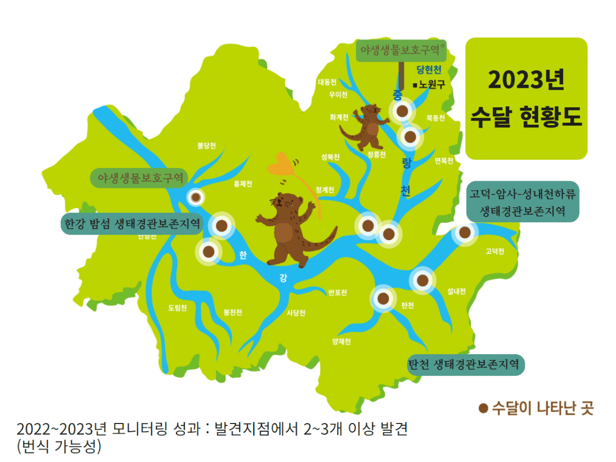 2020년부터 수달이 나타나는 한강의 생태경관보존지역 및 야생동물보호구역, 도시하천을 중심으로 네트워크를 조직하여 함께 하고 있습니다.
