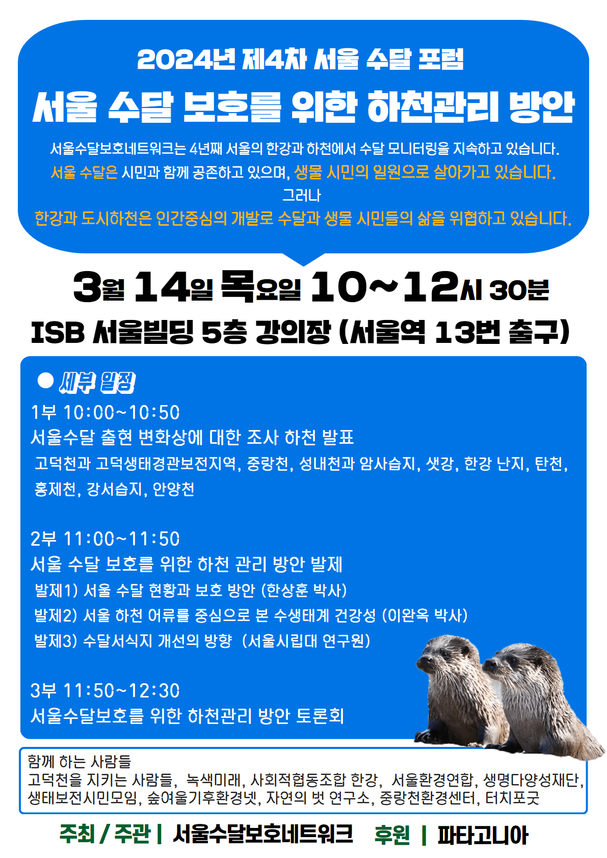 2024년 제4차 서울수달보호네트워크 포럼이 개최되었습니다.