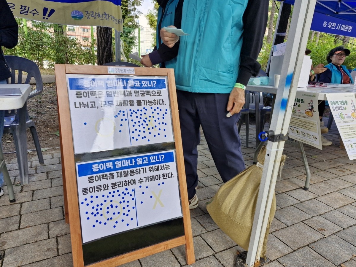상계6_7동 주민자치회 환경분과와 함께 진행하고 있는 종이팩 재활용 사업 홍보도 함께 진행했답니다.