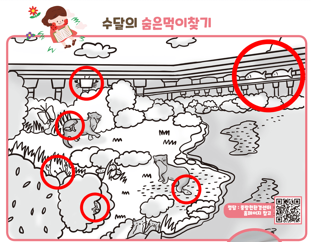 "구해줘! 수달홈즈" 활동지 (수달의 숨은먹이찾기) 정답입니다.