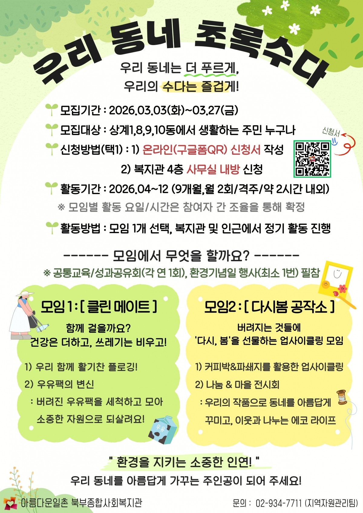 [북부종합사회복지관]우리동네 초록수다 참여자 모집