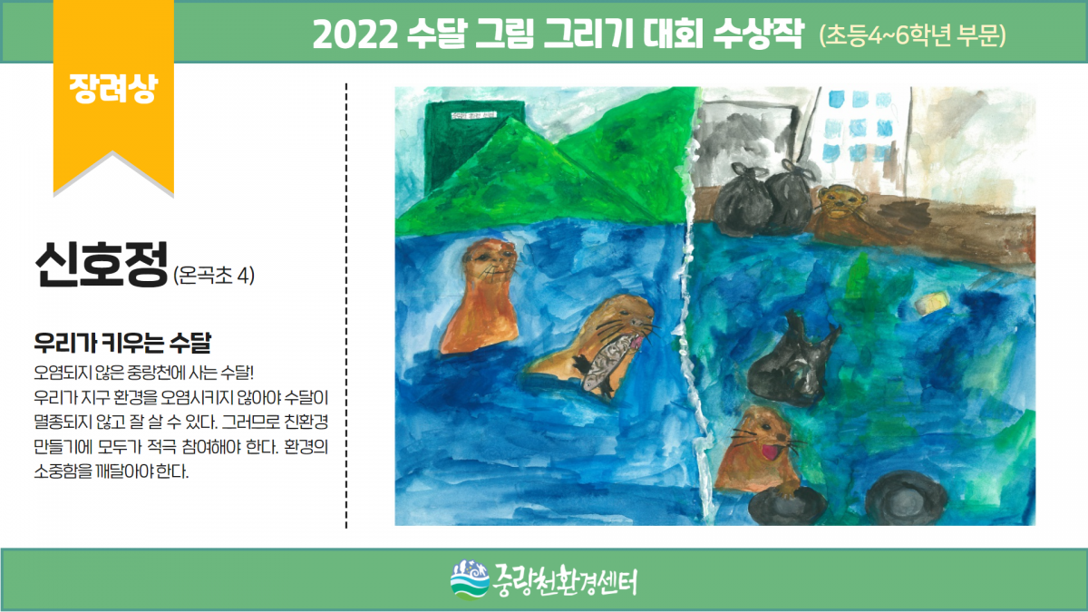 [중랑천환경센터] 2022 수달 그림 그리기 대회 수상작 공고